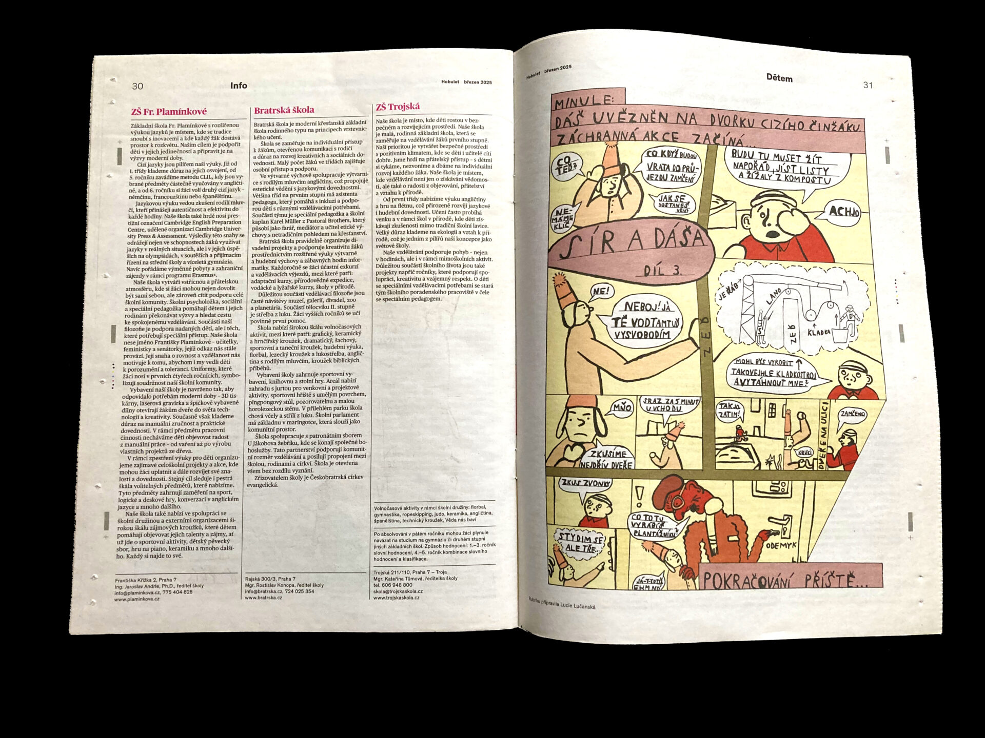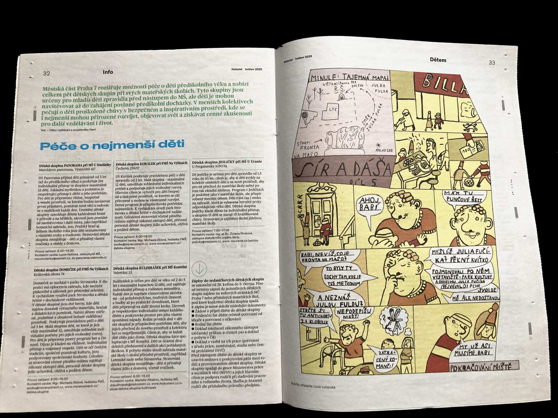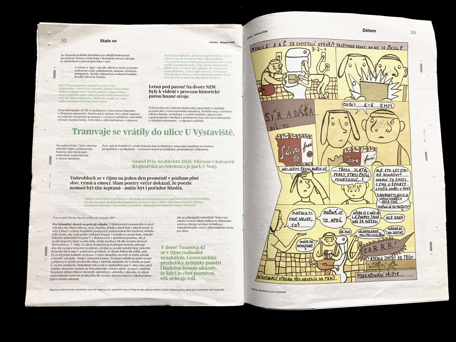 měsíční komixová stránka pro děti v novinách Hobulet
