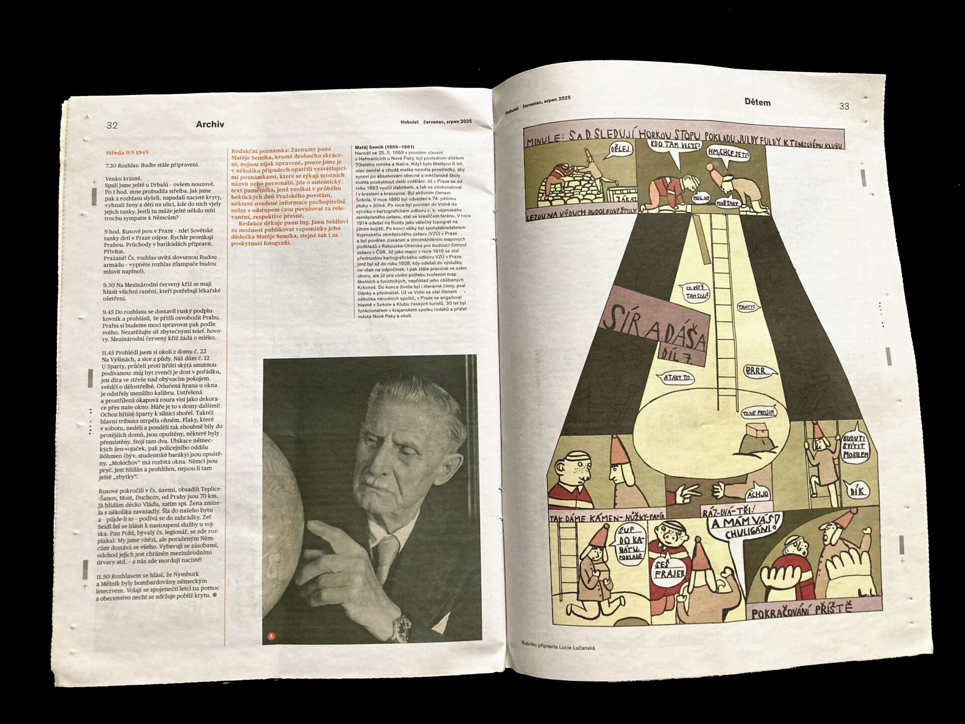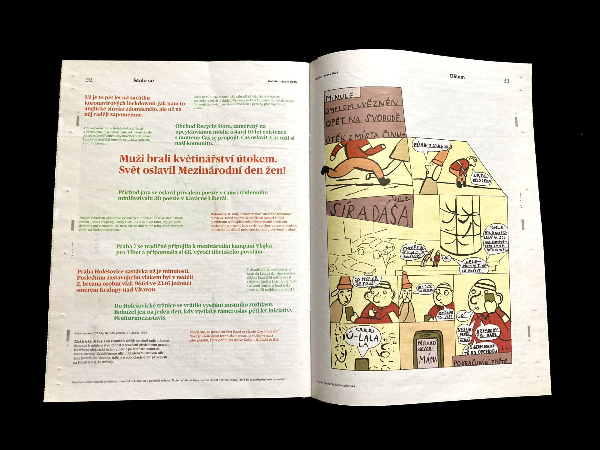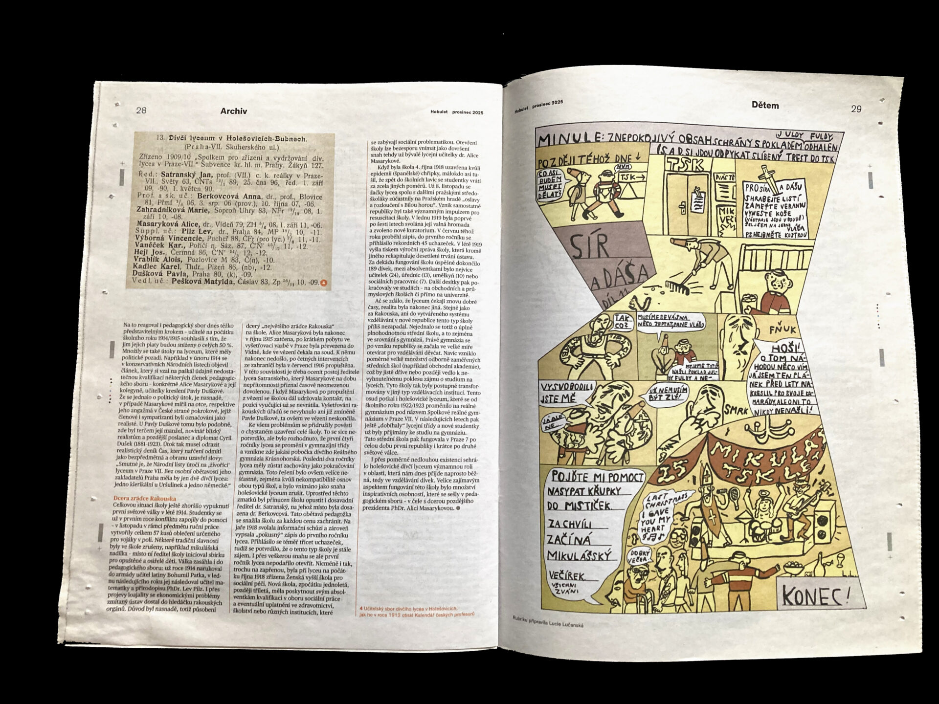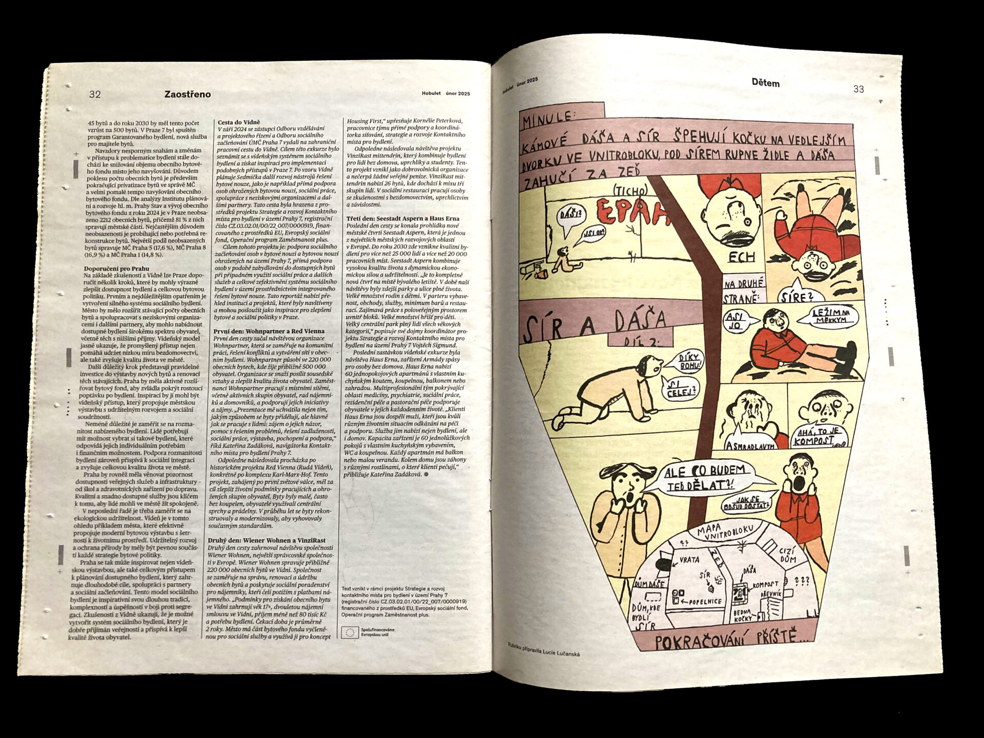 měsíční komixová stránka pro děti v novinách Hobulet
